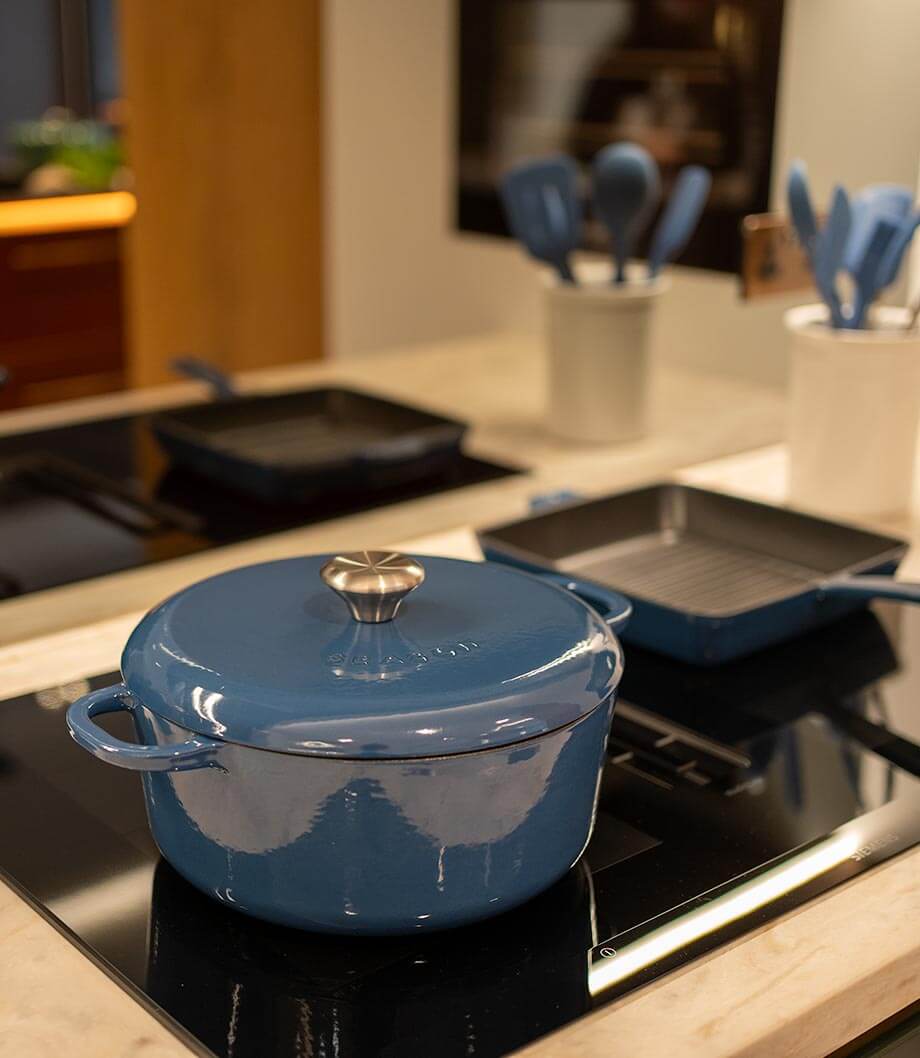 Our Blueberry range is all about timeless contemporary design and everyday brilliance. At its heart, the beautifully crafted casserole – a kitchen essential that transforms slow-cooked dishes into something truly special. The griddle pan follows closely behind, perfect for searing and charring with confidence. And for those finishing touches? Thoughtfully designed tools, like the silicone slotted turner, make every step of cooking that little bit smoother.