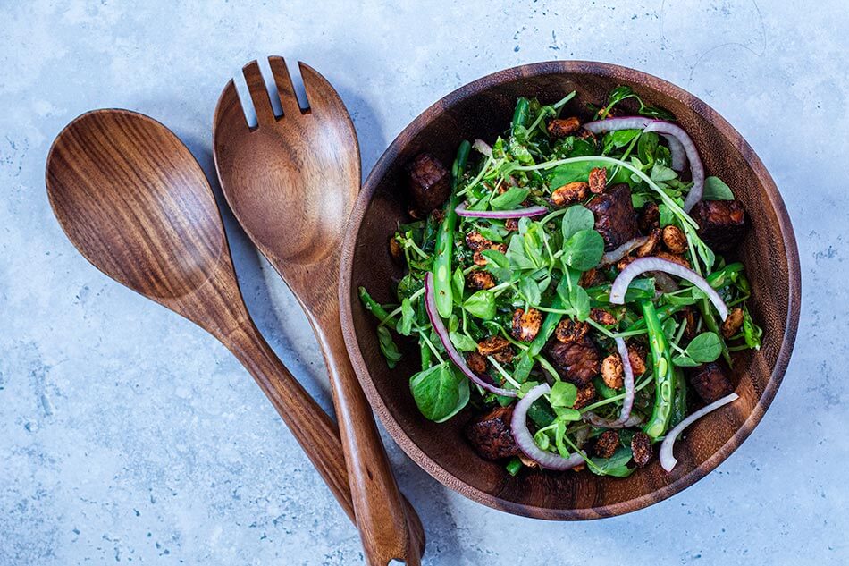 Thai Infused Green Bean Salad with Tempeh Croutons Recipe