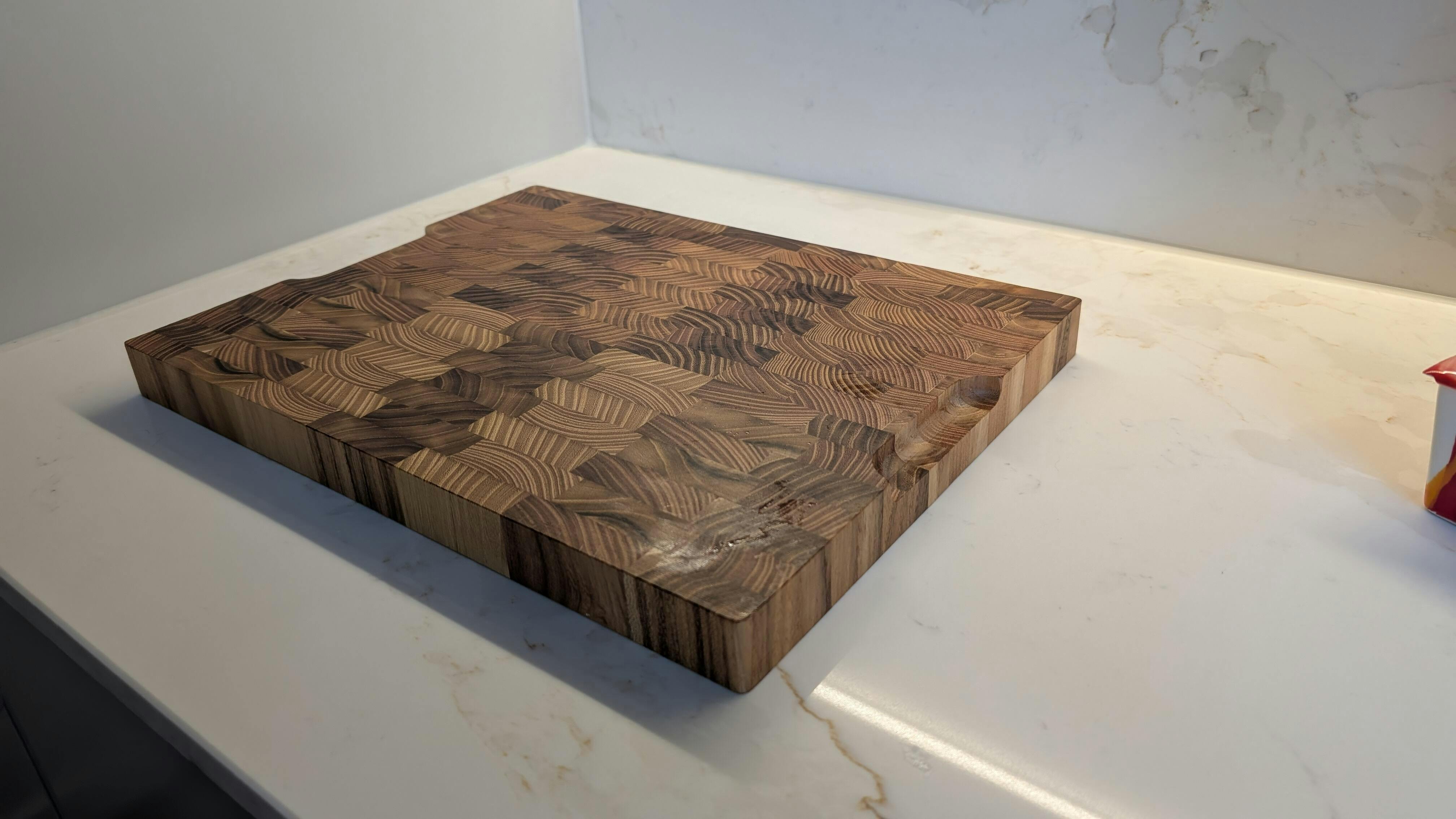 board is great for chopping on but the board does not sit still on our kitchen work surface.the board spins around whilst chopping making the work harder even slightly dangerous. if I flip the board over it sits still, however the handles are then inaccessible lift the board, so a bad design.