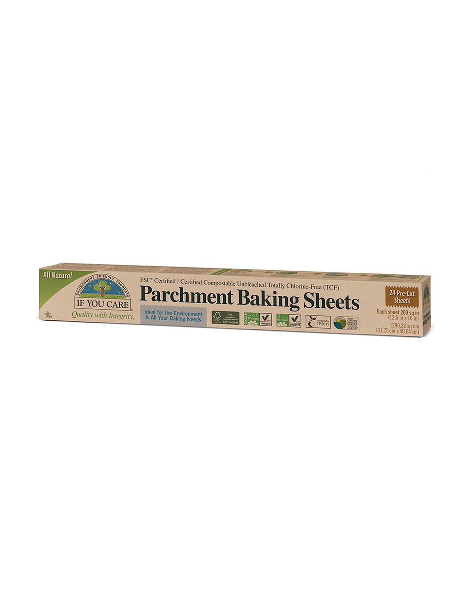 If You Care Parchment Baking Sheets are pre-cut to fit standard metal baking pans. Made from unbleached totally chlorine-free (TCF) greaseproof paper, so no chlorine or chlorine derivatives are dumped into our lakes, rivers and streams. Use If You Care Parchment Baking Paper for baking, roasting, reheating and wrapping.