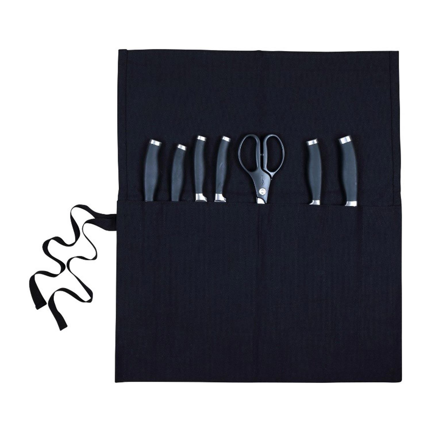 Keep your knives safe when travelling, or tuck them safely away in a drawer using this sturdy Rushbrookes Heavy Duty Knife Roll Wallet. Spaces for 10 knives (or 9 knives and a pair of scissors) and a sharpening steel.