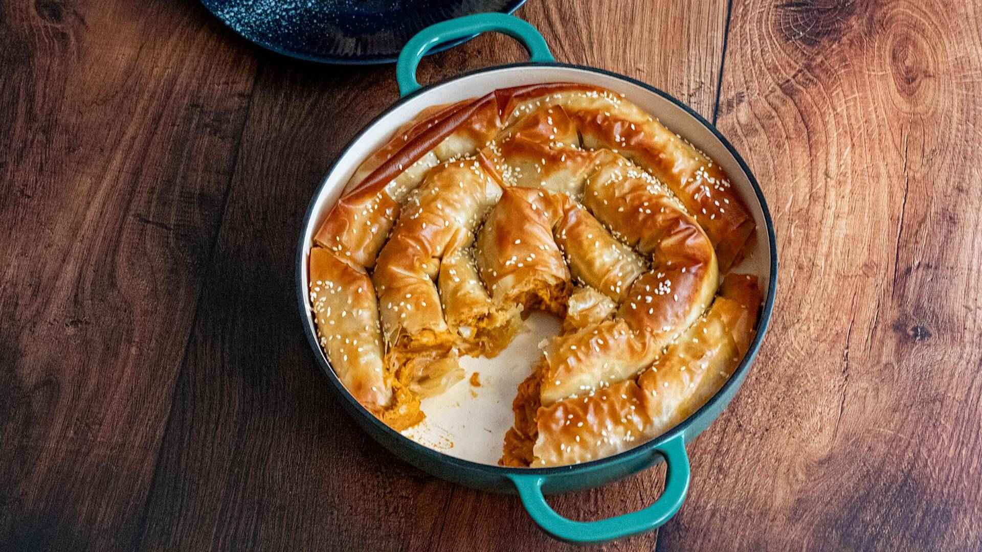 This Sweet Potato and Ricotta Filo Pie combines the earthy sweetness of roasted sweet potatoes with creamy ricotta, all encased in crisp, golden filo pastry.