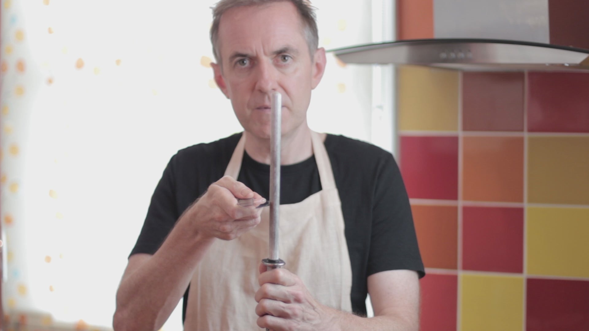 The easiest way to get the correct angle is to place the Steel tip-down on a work surface so it’s vertical. Then hold the knife tip against it so the knife’s at a horizontal (90°) angle. Halve the angle (90°) halve again (22°) and take a tiny bit off and you should be at the correct angle for European knives (20°). For Japanese knives, (10-15°), take a tiny bit more off.