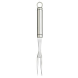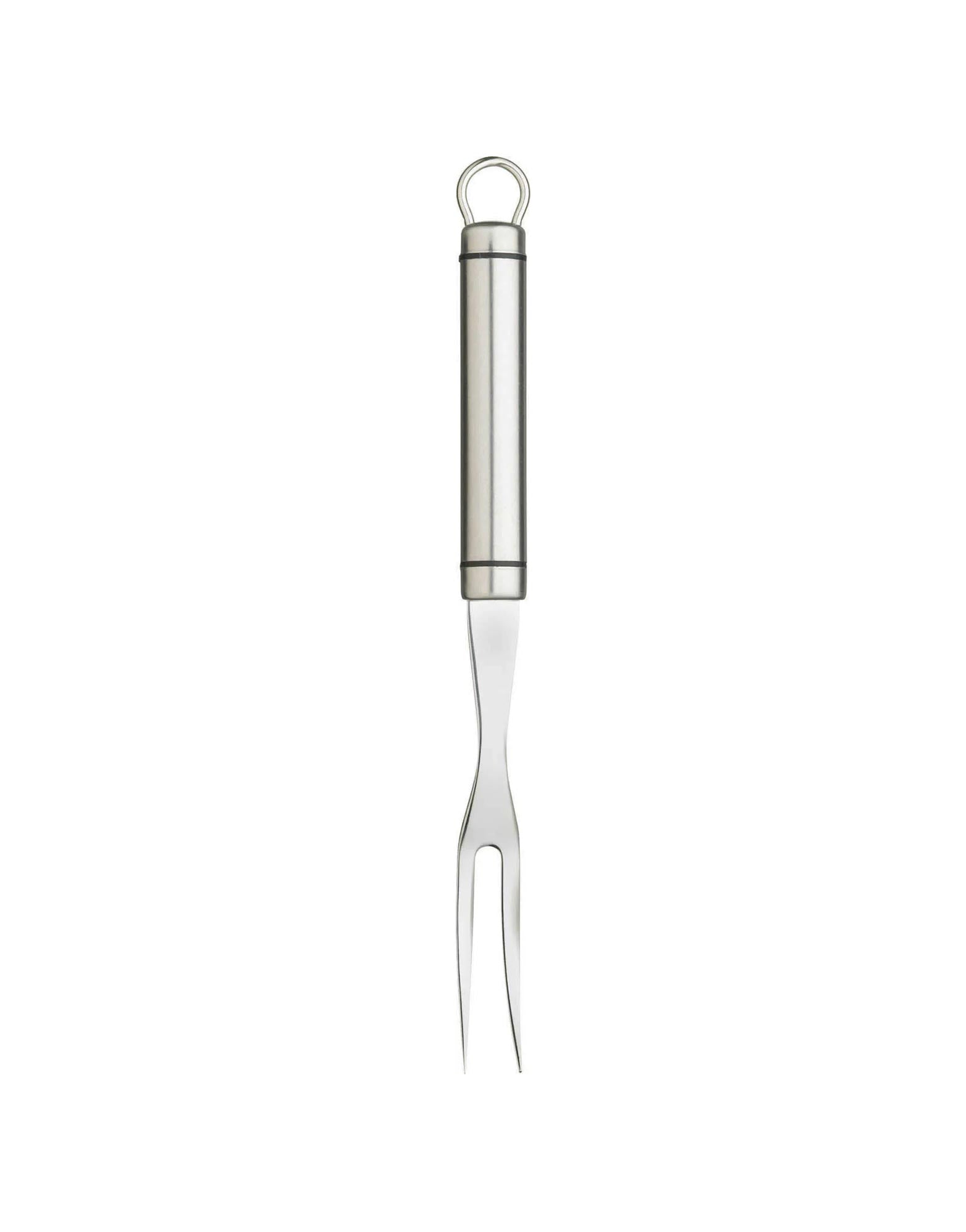 Stainless steel meat fork, with a comfortable oval shaped handle and integral hanging storage loop.